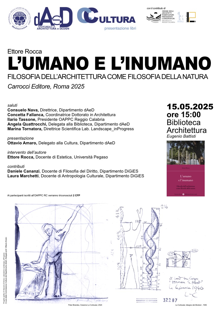15 maggio 2025, Università Mediterranea, presentazione del volume di E. Rocca, L'umano e l'inumano. Filosofia dell'architetturacome filosofia della natura